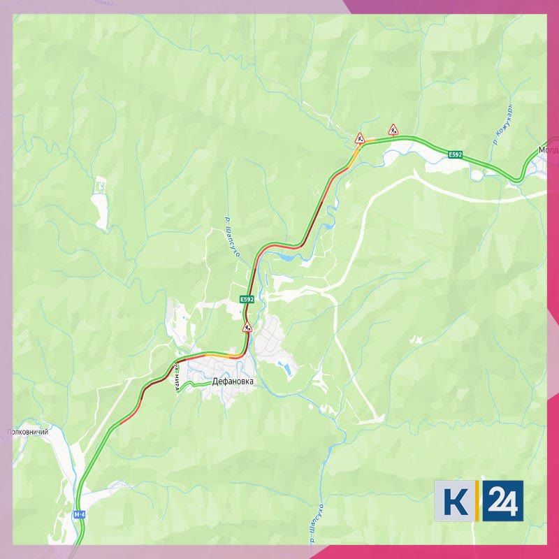 Почти 12-километровая очередь из машин растянулась в районе села Дефановка (Туапсинский округ).
