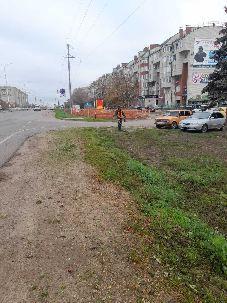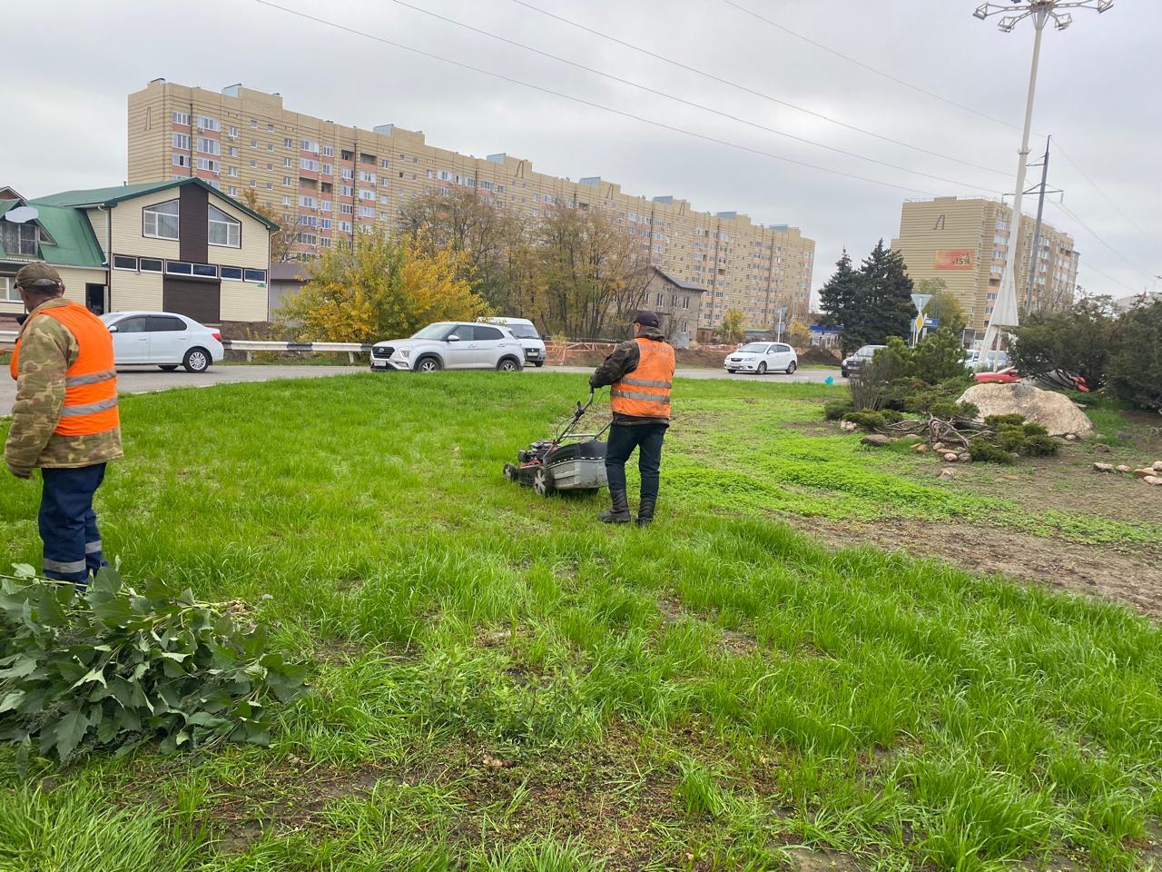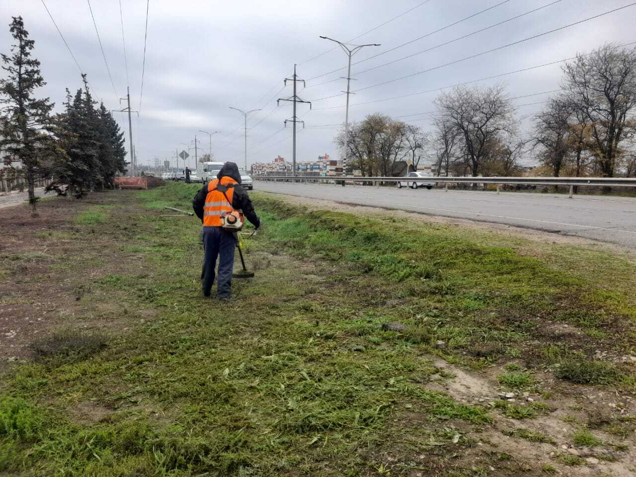 Покос сорной растительности на пересечении улиц Красной и Коммунистической (кольцо), по ул. Коммунистической, от ул. Щорса до ул. Красной и уборка скошенной травы