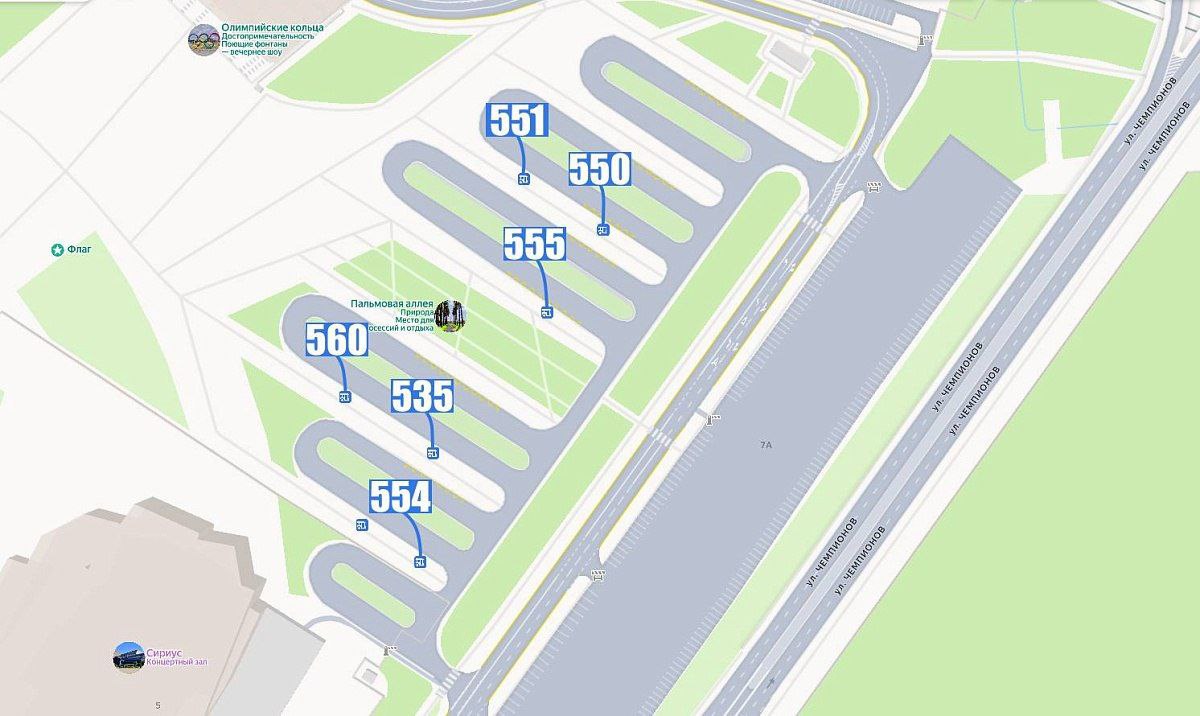 Маршруты № 535 и № 551 будут осуществлять движение от остановочного пункта «Ж/д вокзал Олимпийский парк» по ул. Вокзальной, далее по Триумфальному проезду с выездом на ул. Триумфальную и далее по действующему маршруту. Маршрут № 554 будет осуществлять движение от остановочного пункта «Ж/д вокзал Олимпийский парк», с выездом на ул. Чемпионов, затем по кольцу налево на Олимпийский проспект, далее по маршруту.Также с 18:00 посадка пассажиров будет производиться только на остановочном пункте «Ж/д вокзал Олимпийский парк», посадка на остановках «Сочи Парк» и «Стадион «Фишт» осуществляться не будет.