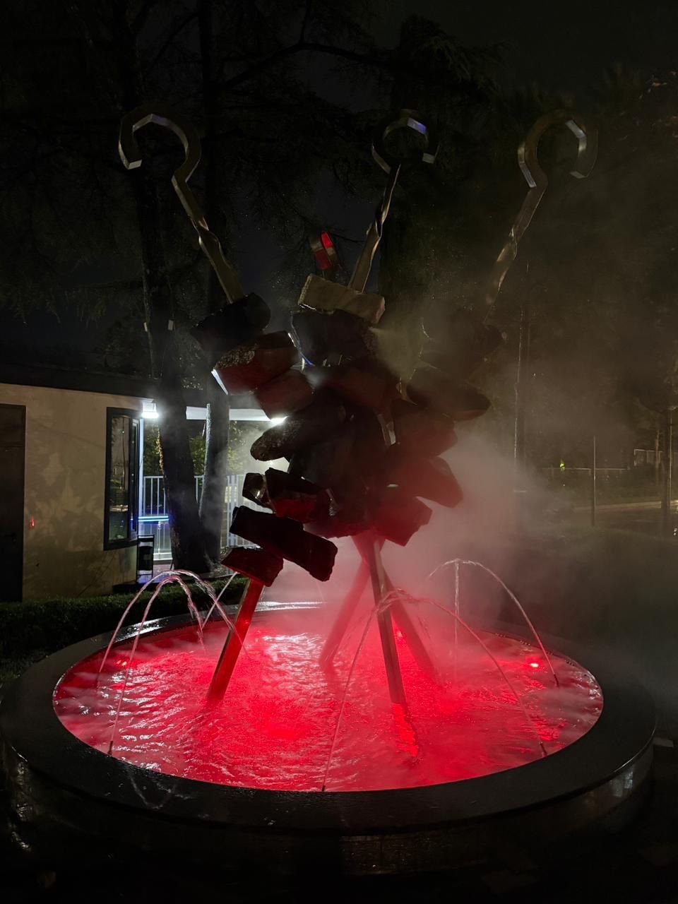 Арт-объект претендует на новую достопримечательность города. В темное время суток шампуры фонтана будут подсвечены красным, имитируя жар углей, а парогенераторы создадут эффект дыма.