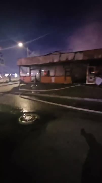 На данный момент огонь ликвидировали. На кадрах видно, что торговый павильон выгорел полностью.