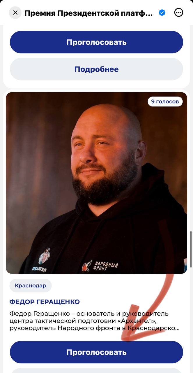 Руководитель исполкома Народного фронта в Краснодарском крае и директор центра тактической подготовки «Архангел» успешно преодолел предыдущие этапы и вышел в финал премии президентской платформы «Россия – страна возможностей». Федор Геращенко представлен в номинации «Добрые дела».