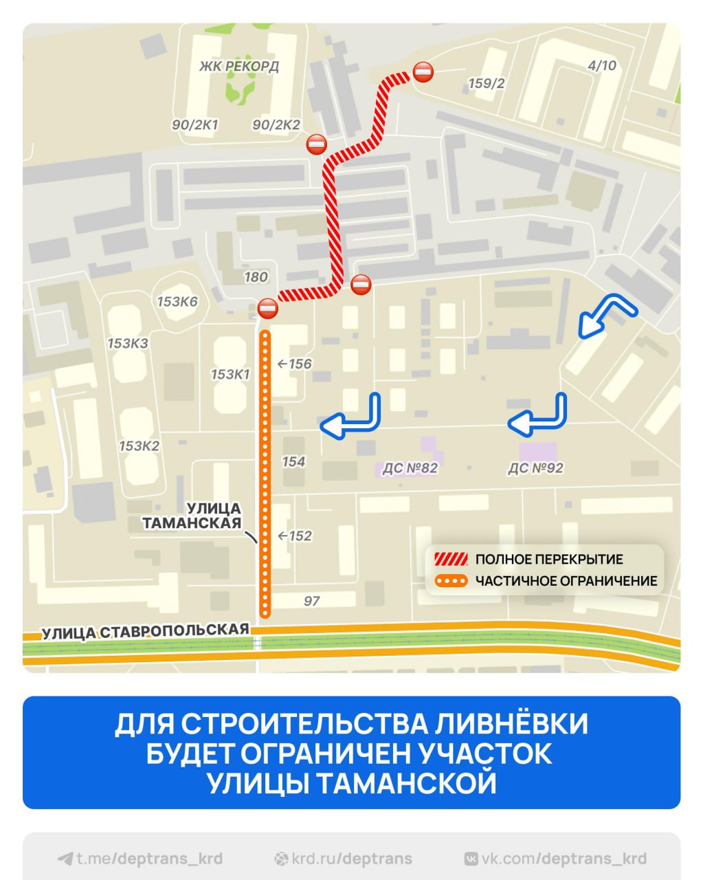 На улице Таманской будет ограничено и перекрыто движение с 24 ноября