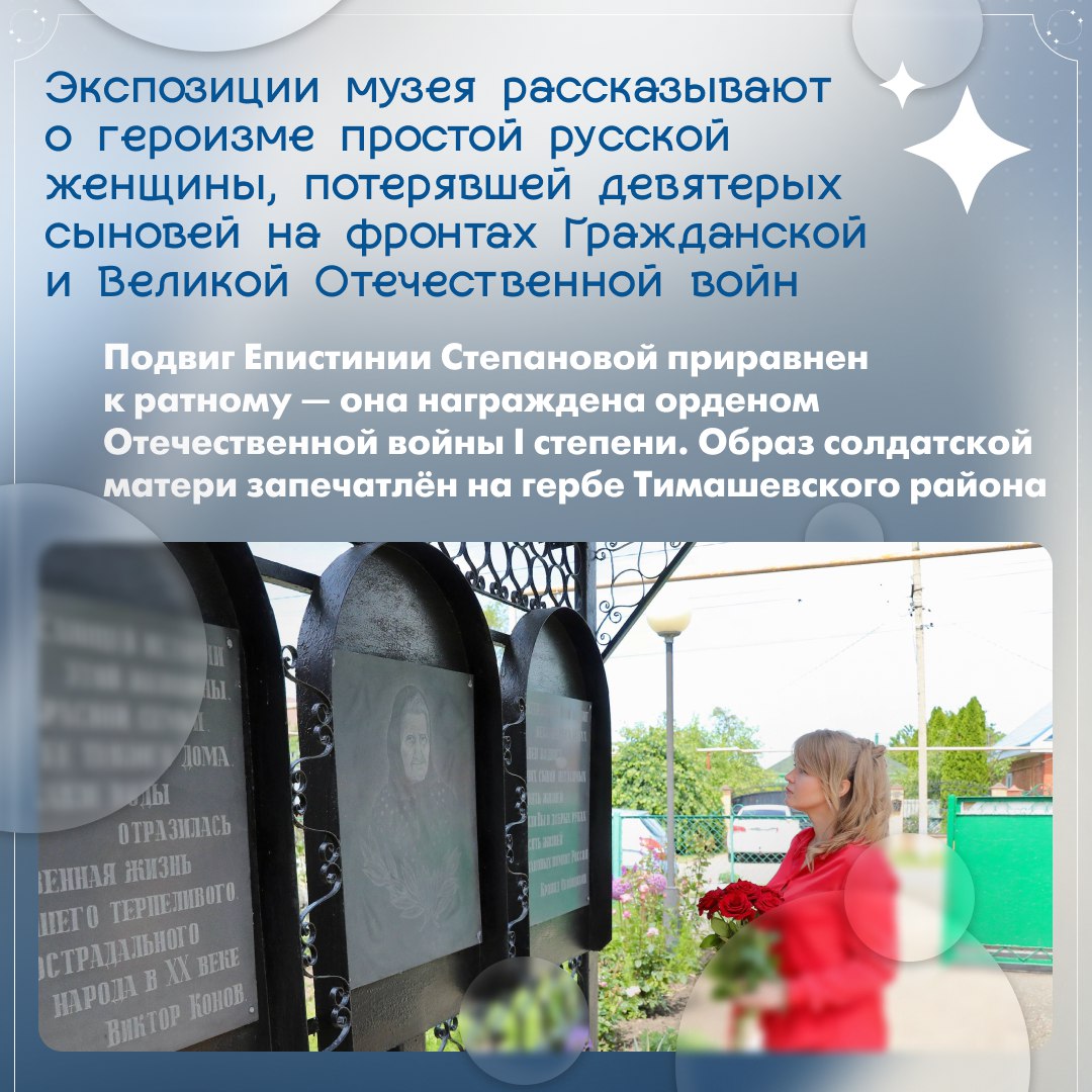 Он стал местом сохранения памяти о подвиге Епистинии Степановой и её сыновей, отдавших жизни за Родину