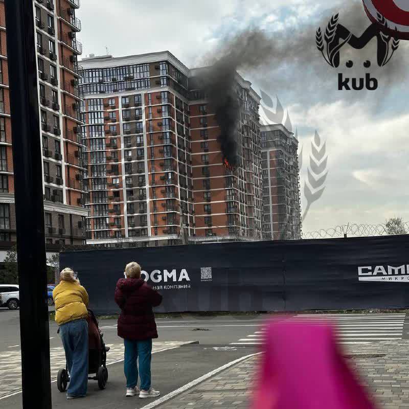 Квартира полыхает в высотке на Западном обходе в Краснодаре.