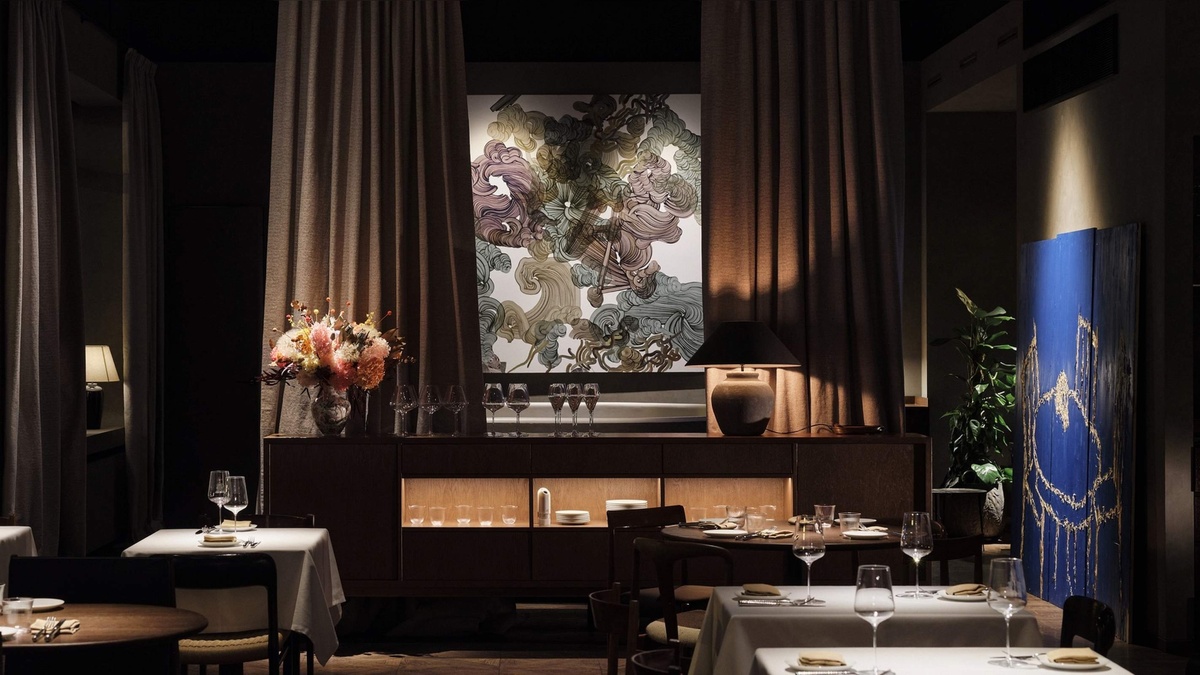 Внутреннее оформление ресторана дарит ощущение уюта и современности благодаря открытую кухню, темным деревянным акцентам и приятно приглушенному освещению. Ценные детали в интерьере дополняются элементами современного искусства, создавая идеальную атмосферу для ценителей высокой кухни.
