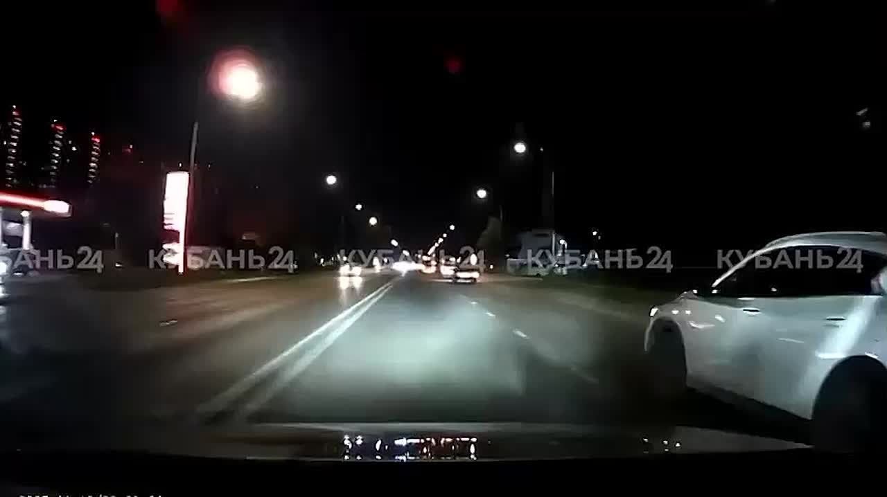 Вылетел на встречку и загорелся: момент ночного ДТП в Краснодаре попал на видео.