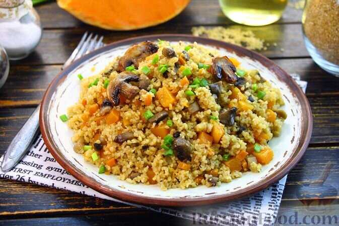 Это блюдо порадует любителей быстро готовящейся пищи. Приготовление булгура с тыквой и шампиньонами в казане или глубокой сковороде превращается в простое и увлекательное занятие. Яркая тыква добавляет сочности, а обжаренные грибы и соевый соус делают блюдо насыщенным и ароматным.