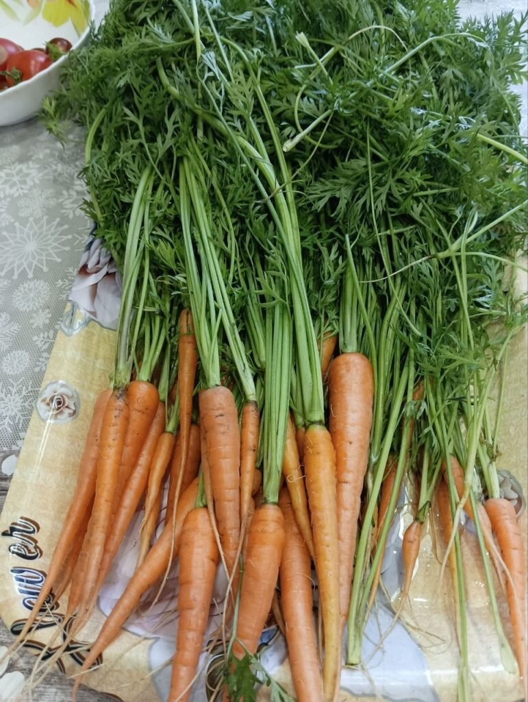 С моментом начала сбора урожая порадовала не только клубника. Морковка, посеянная в конце мая, тоже требует внимания. В этом году работы по посадке изменились: овощные грядки стали более широкими, что упростило уход за морковью. Лучше организованное пространство дало возможность более комфортно удалять ненужные ростки, что показалось невозможно в прошлые сезоны.