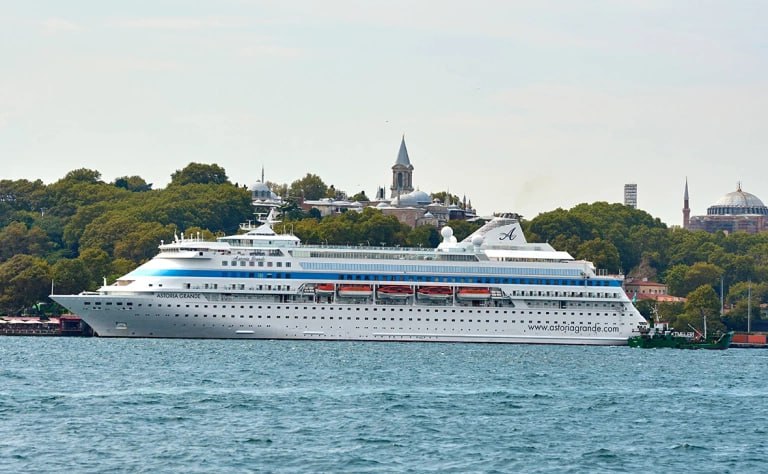 Портовые власти Стамбула не дали разрешения международному круизному лайнеру «Astoria Grande», который ходит под флагом Палау, на швартовку. Судно вынуждено проследовать к следующему порту — в город Сочи, сообщила РБК пресс-служба генерального агента по продажам Astoria Grande ООО «СК АКВИЛОН».
