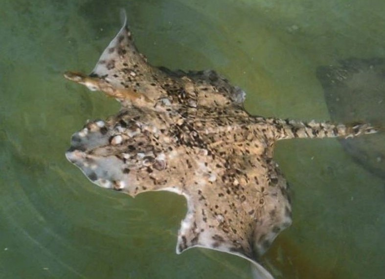Его обнаружили у берегов Карадага в Крыму. Уникальным этого ската делают его плавники: по какой-то причине они не срослись спереди и внешне стали похожи на крылья.