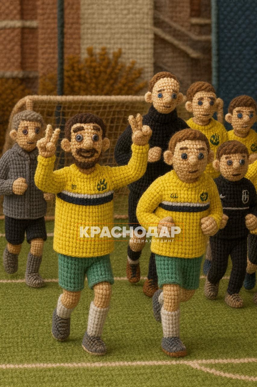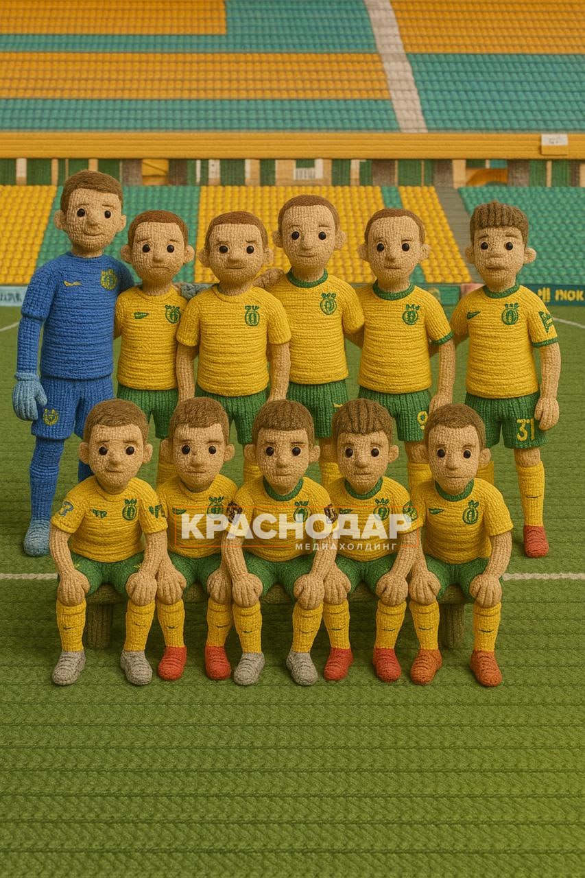 Нам настолько понравился «вязаный» тренд, что мы готовы генерить почти все. Но ограничимся нашими спортсменами. Перед вами – одна из наших любимых футбольных команд – ПФК «Кубань»