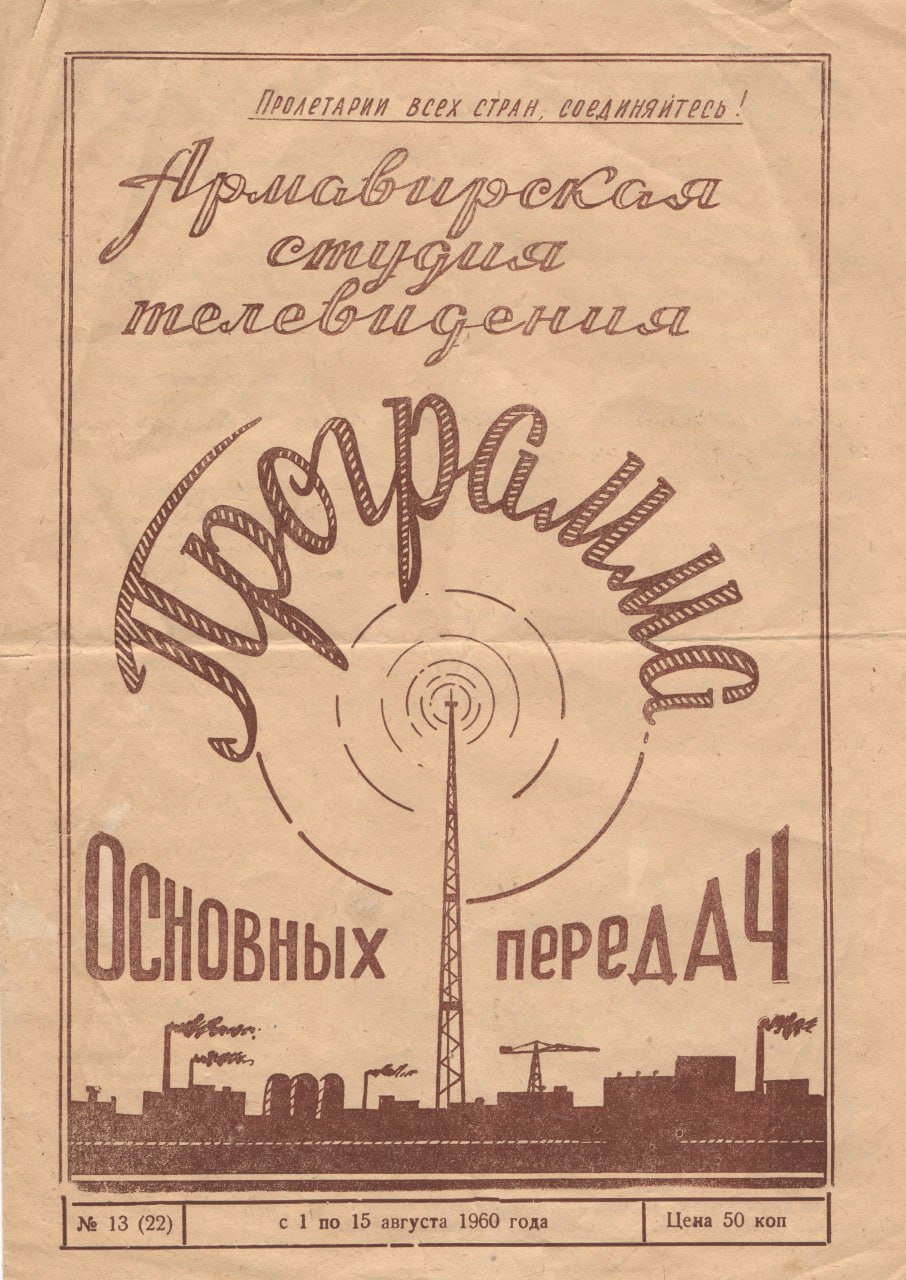 Регулярное телевизионное вещание в Армавире началась в конце 1950-х после установления телебашни на пересечении улиц Р. Люксембург и Шевченко. Её шпиль достигал 73 метра высоту, а радиус действия сигнала составил около 65 километров.