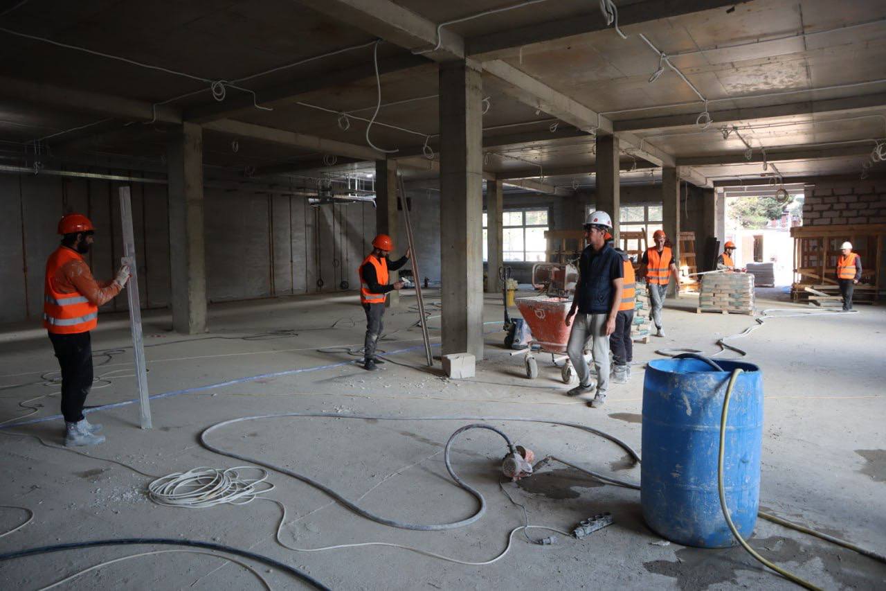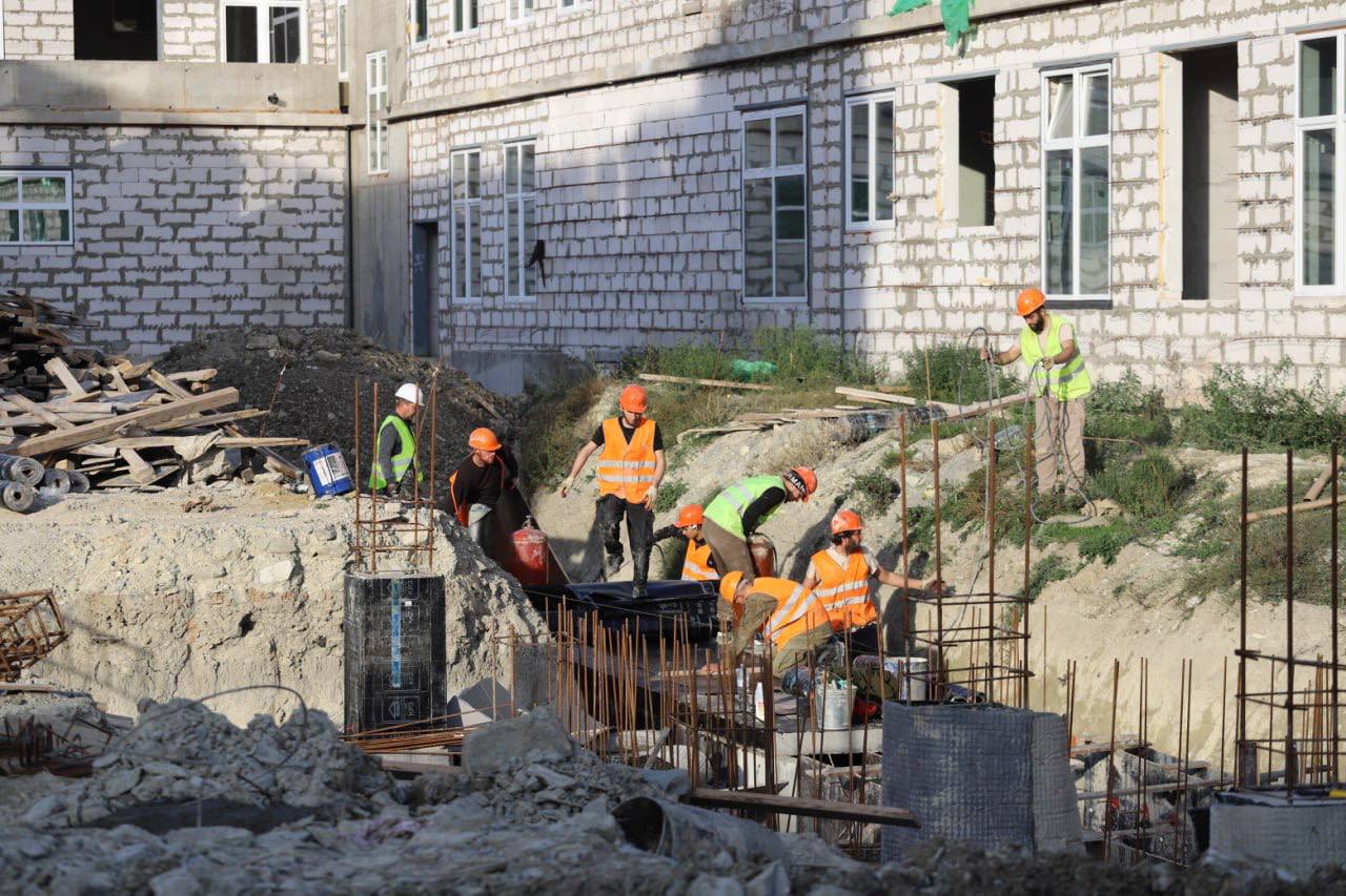 Бываю на стройплощадке регулярно. Сейчас на объекте трудится порядка 140 человек. 53% работ выполнено, ведётся чистовая отделка. Параллельно продолжаются электромонтажные работы во всех блоках, прокладываются системы отопления. Рабочие собирают и монтируют металлоконструкции, выполняют гидроизоляцию, фасадные работы.
