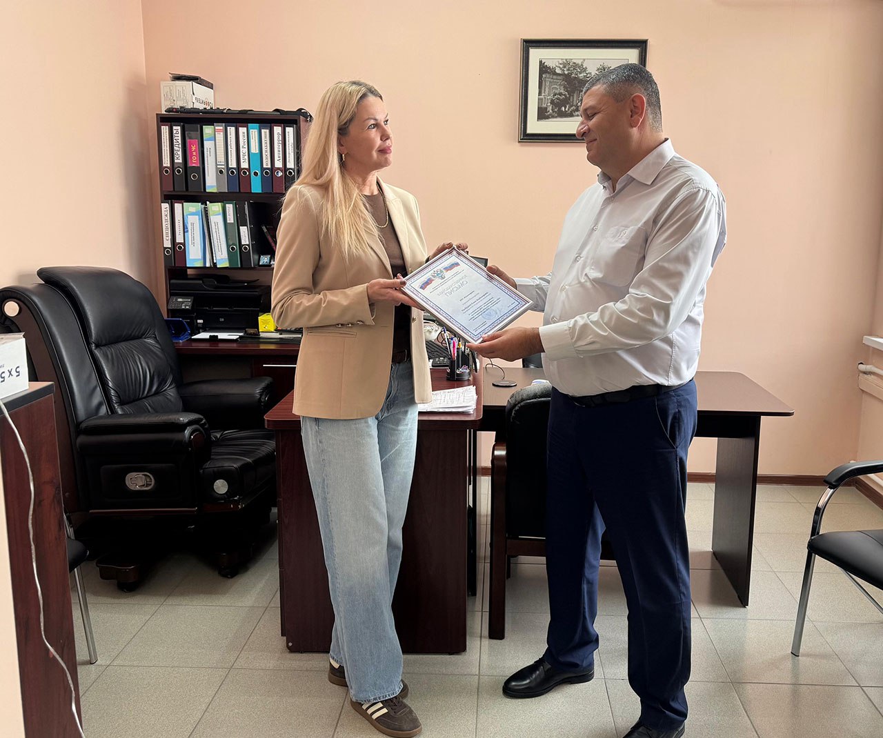 Директор филиала ФБУ «Росавтотранс» в СКФО Георгий Афанасов поздравил коллектив предприятия, пожелал дальнейших успехов во благо развития транспортной сети Ставропольского края и вручил благодарственное письмо директору автостанции Елене Клобуковой за плодотворную работу, содействие в вопросах совершенствования регулярных перевозок, высокую социальную позицию и отзывчивость.
