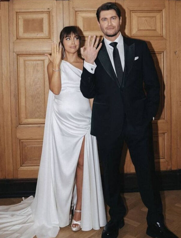 - Мари Крамбрери и Дава: Пара официально зарегистрировала свои отношения в феврале 2025 года. Мари, известная своим необычным стилем, выбрала элегантное белоснежное платье с ослепительным разрезом и длинным шлейфом, которое лишь подчеркнуло ее «интересное положение». Образ завершали стильные туфли на каблуках.