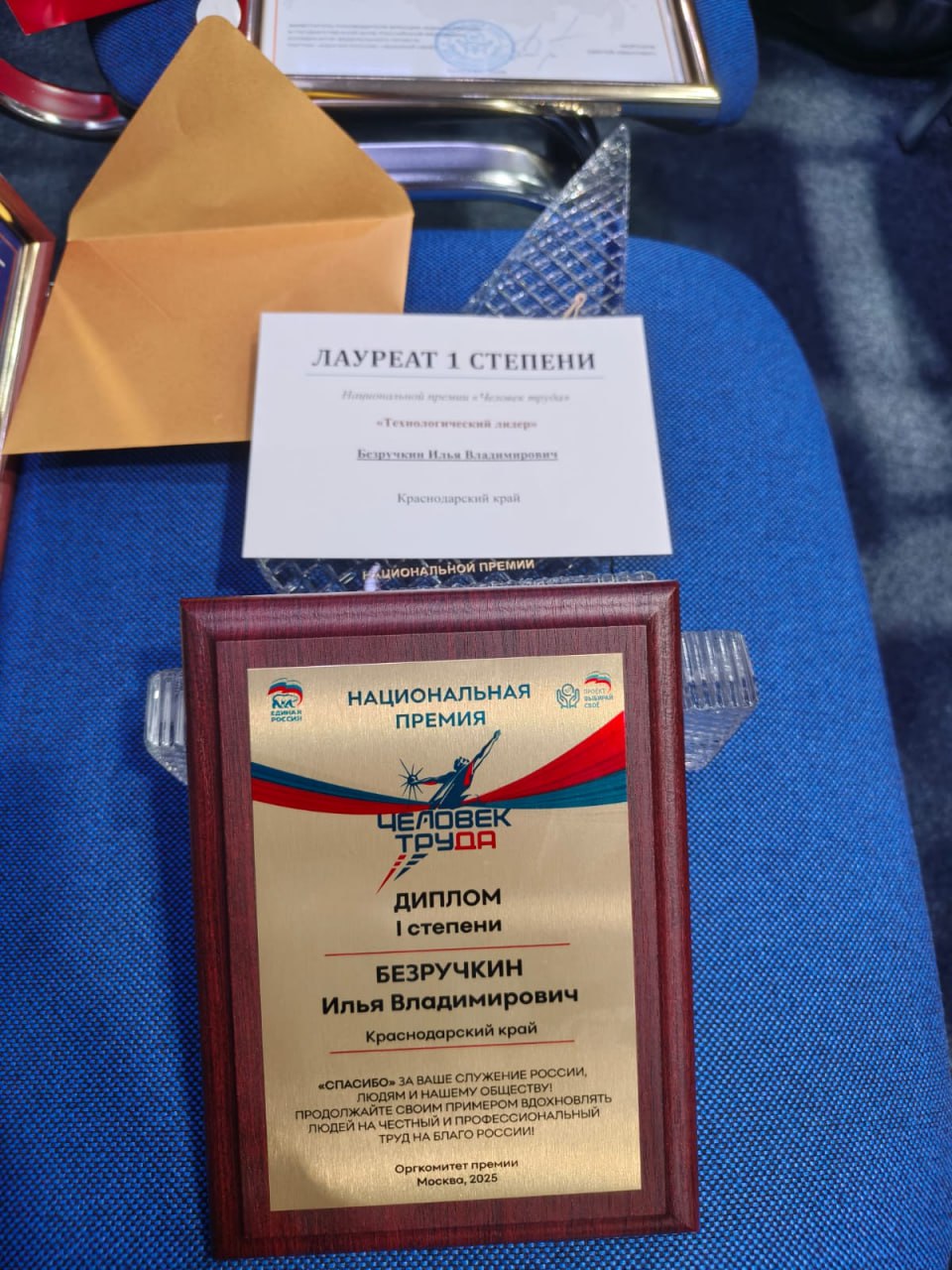 Инженер-изобретатель из Армавира Илья Безручкин стал победителем Национальной Премии «Человек труда». Торжественная церемония награждения победителей прошла 21 ноября в Москве. Всероссийский конкурс объединил 210 представителей трудовых династий из 70 регионов страны, продемонстрировавших лучшие практики, способствующие повышению престижа рабочих профессий.