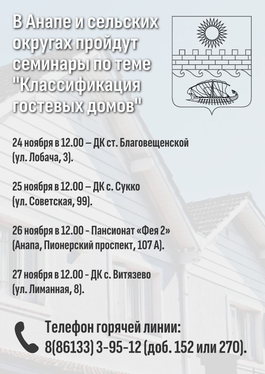 В Анапе и сельских округах пройдут семинары для владельцев гостевых домов