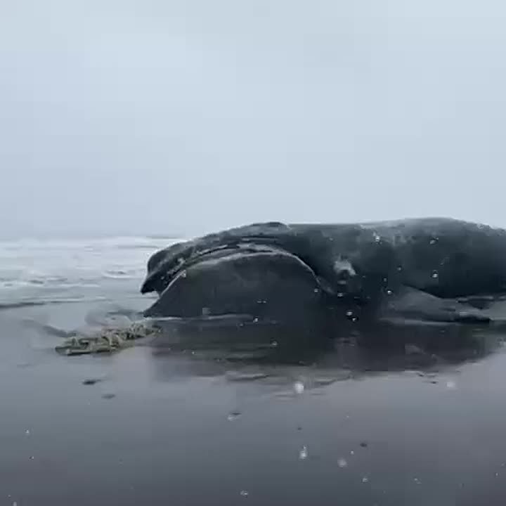 Японского кита выбросило на берег Камчатки. Редкое животное могло запутаться в сетях