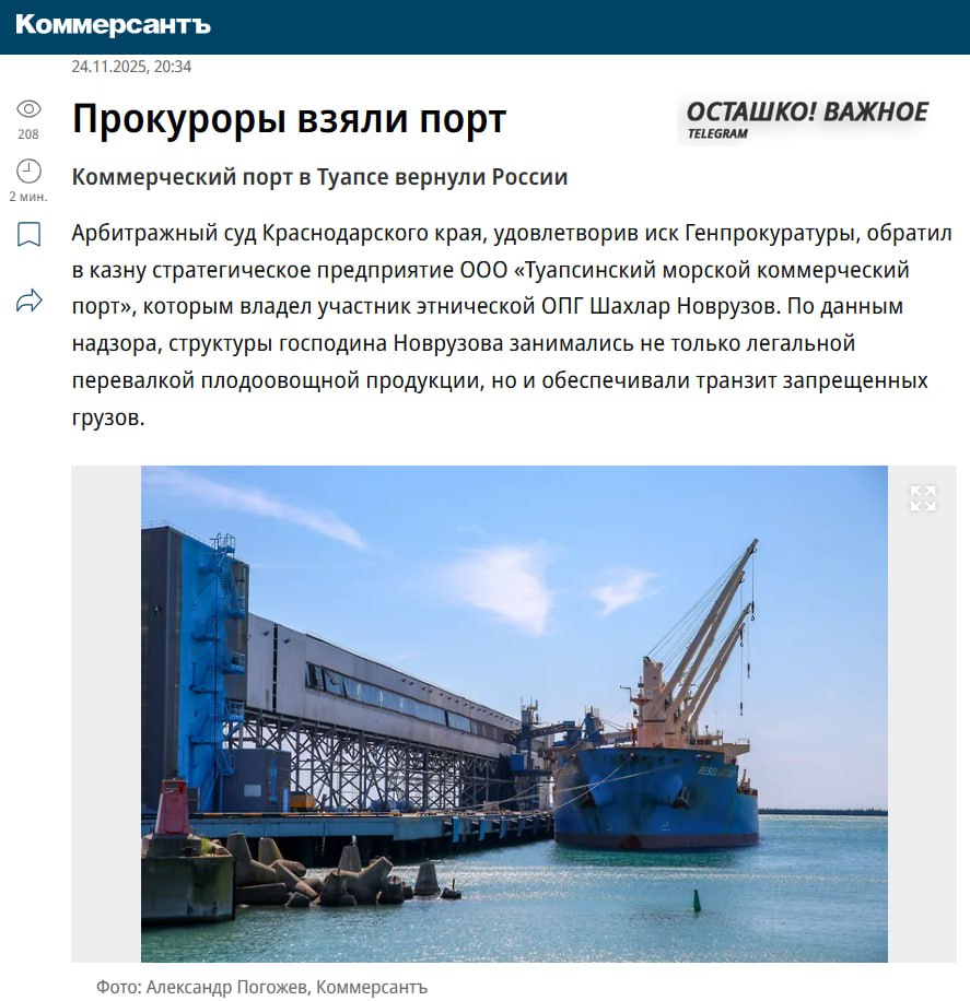 Суд в Краснодаре вернул в доход России портовые активы уроженца Азербайджана