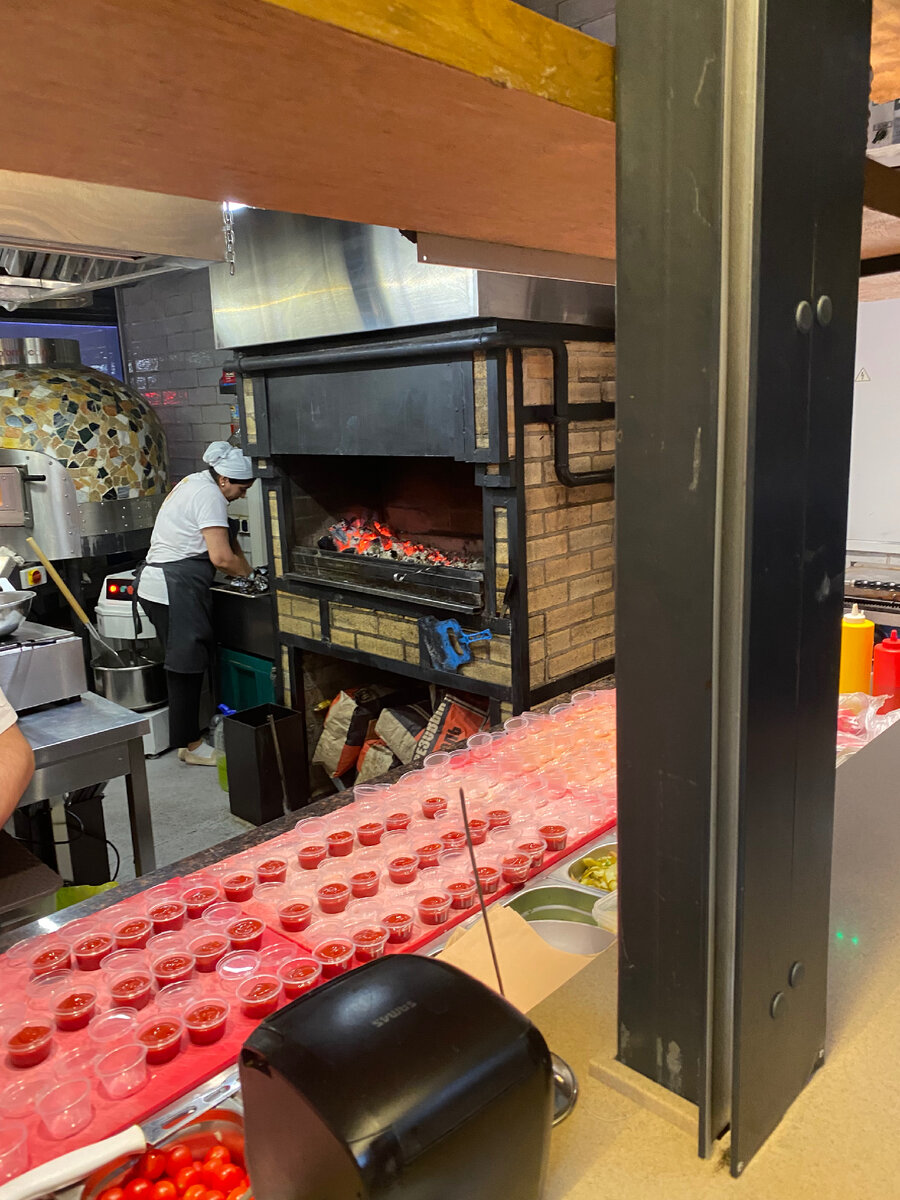 После кутаба пришло время для мега-чебурека с мясом. Это не просто чебурек – он похож на гигантскую кулинарную фантазию. Сравнив его с ладонью, становится очевидно: это монументальное творение печется тут же, порадовав гурманов свежестью и большим количеством начинки. Каждый кусочек мягкий, сочный, а томатный соус подается отдельно.