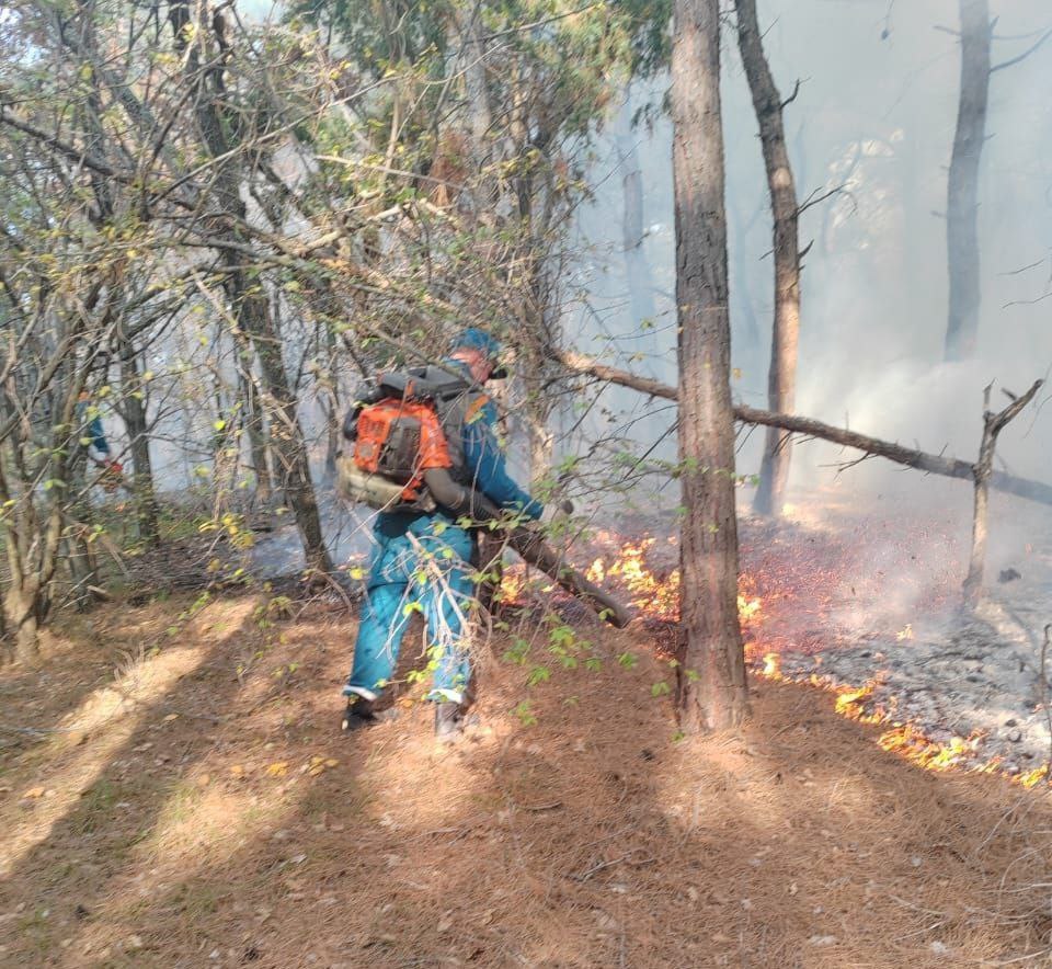 Второй – в Северском районе, рядом с поселком Мирный, на площади 22,5 га. Работу пожарных значительно осложняет труднодоступный горно-лесистый рельеф.