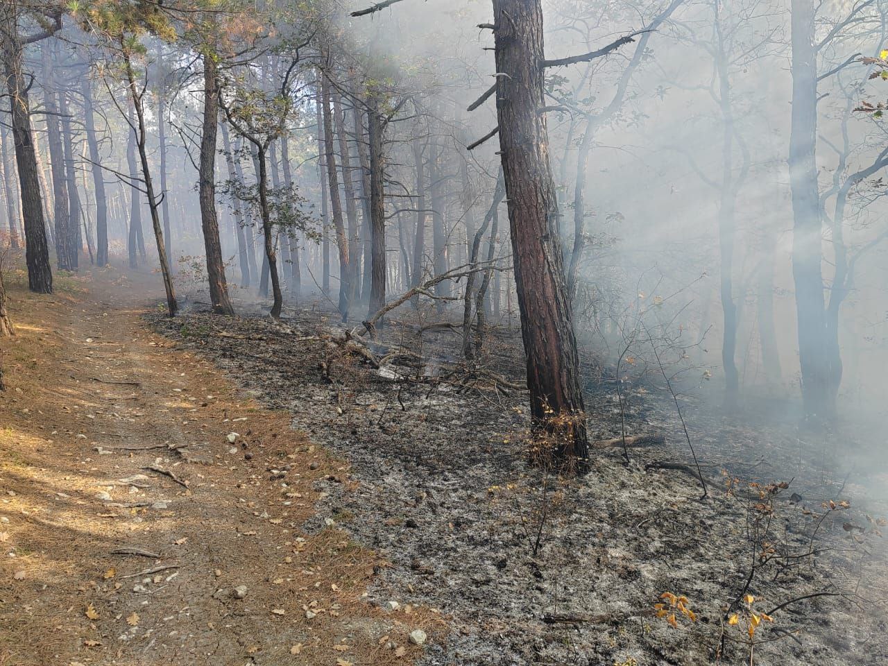Третий очаг возгорания был зафиксирован 25 ноября в Геленджике, в районе СНТ Сосновка, где огонь прошел 2 га лесного массива.