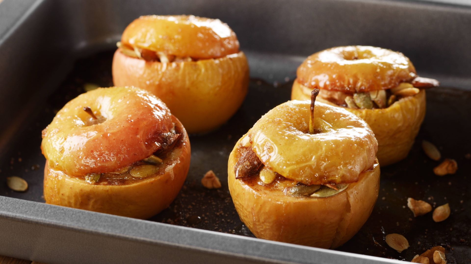 Фаршированные яблоки у большинства ассоциируются с десертом. Это потому, что в плоды чаще всего кладут сухофрукты, мед и творог. Однако из них можно сделать и полноценное второе блюдо. Стоит лишь заготовить особую начинку.