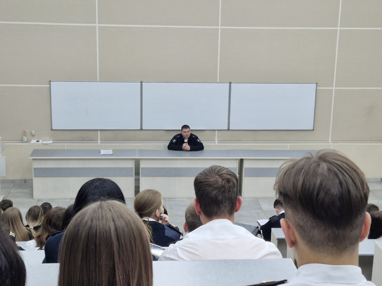 В Новороссийске прошла встреча сотрудников полиции с курсантами транспортного колледжа ГМУ имени Адмирала Ф.Ф. Ушакова., посвященная кибербезопасности молодежи, в рамках акции «Киберщит». Мероприятие, направленное на повышение цифровой грамотности, собрало 75 второкурсников юридического факультета.