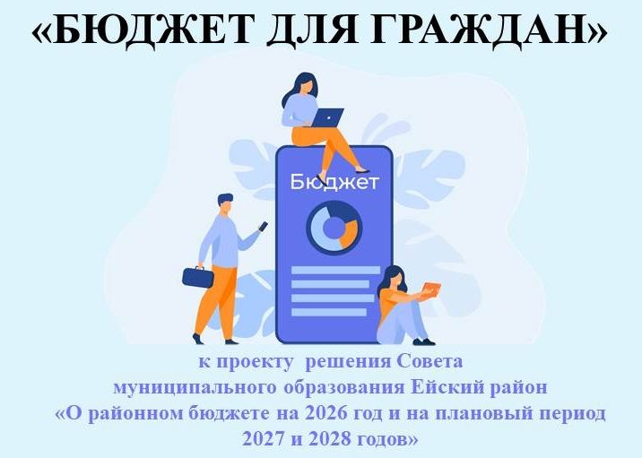 На официальном сайте муниципального образования Ейский район в информационно¬ телекоммуникационной сети «Интернет» в подразделе «Бюджет для граждан» раздела «Финансовое управление» (yeiskraion.ru/administra...) размещен Бюджет для граждан, разработанный на основе проекта решения Совета муниципального образования Ейский район «О бюджете муниципального образования Ейский район на 2026 год и на плановый период 2027 и 2028 годов».