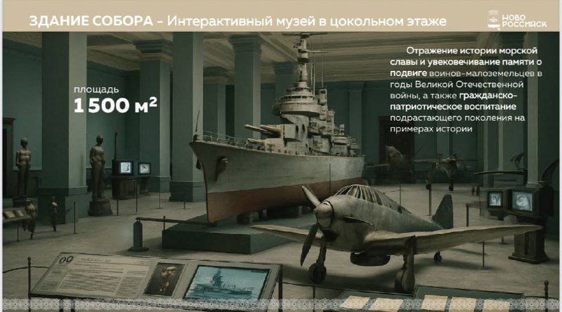 Он также уточнил, что в цокольном этаже собора будет расположен интерактивный музей площадью 1505 квадратных метров, посвященный истории морской славы и памяти о подвиге воинов-малоземельцев в годы Великой Отечественной войны. Музейное пространство будет оснащено современными интерактивными инсталляциями.