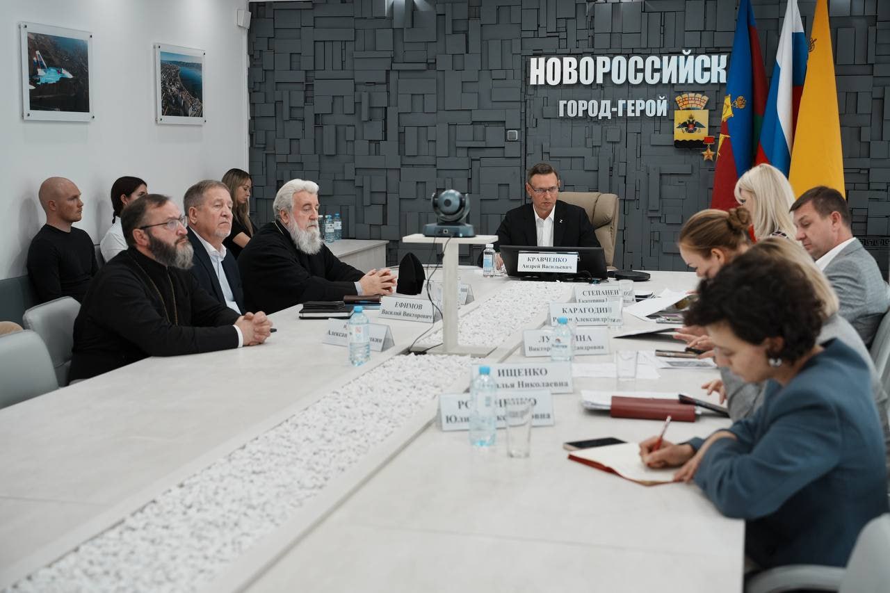 В администрации Новороссийска состоялась рабочая встреча, в ходе которой глава города-героя Новороссийска Андрей Кравченко, епископ Новороссийский и Геленджикский Сергий, советник правящего архиерея по вопросам строительства Василий Ефимов и настоятель Морского кафедрального собора в честь святителя Николая Чудотворца протоирей Александр Абрашкин обсудили ход строительства Морского кафедрального собора.
