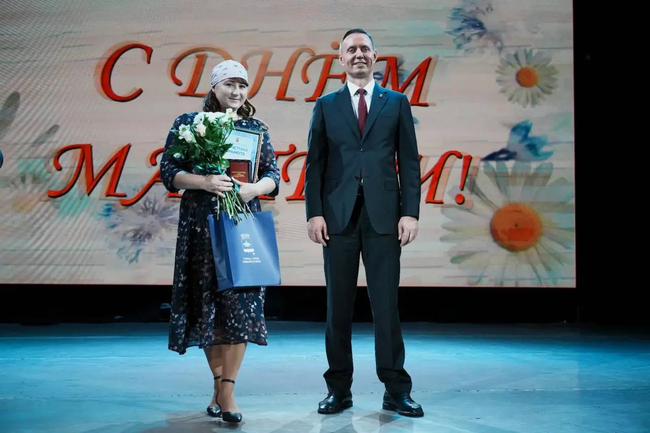 На торжественной церемонии вручил почётные грамоты и муниципальные медали «За благородный материнский труд» многодетным матерям.
