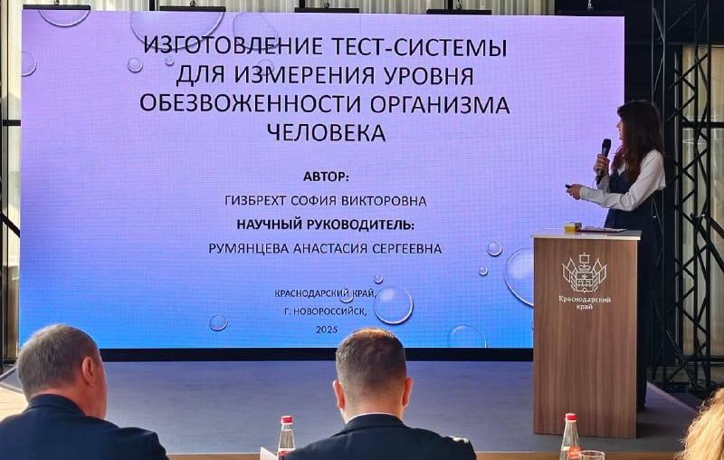 Проект Софии Гизбрехт «Изготовление тест-системы для измерения уровня обезвоженности организма человека» был представлен в финале конкурса в номинации «Лучший инновационный проект в сфере здравоохранения, биомедицины, фармацевтики».