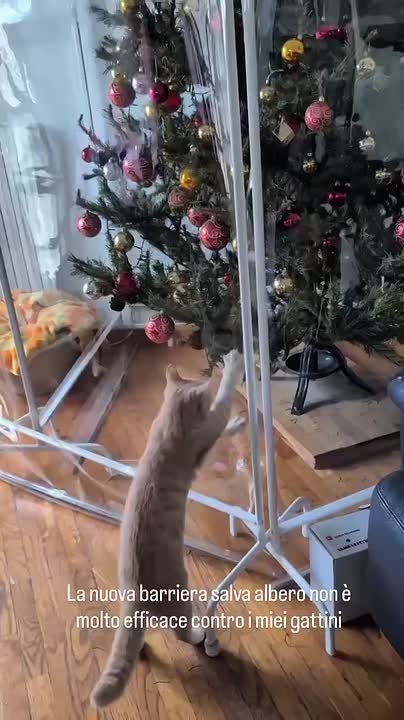 Мужик решил заснять отзыв на защитное ограждение ёлки от домашних животных, но для кота препятствий не существует