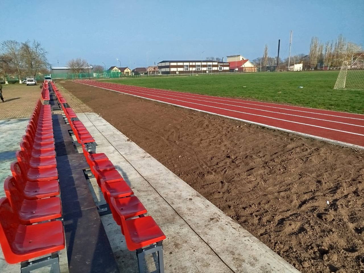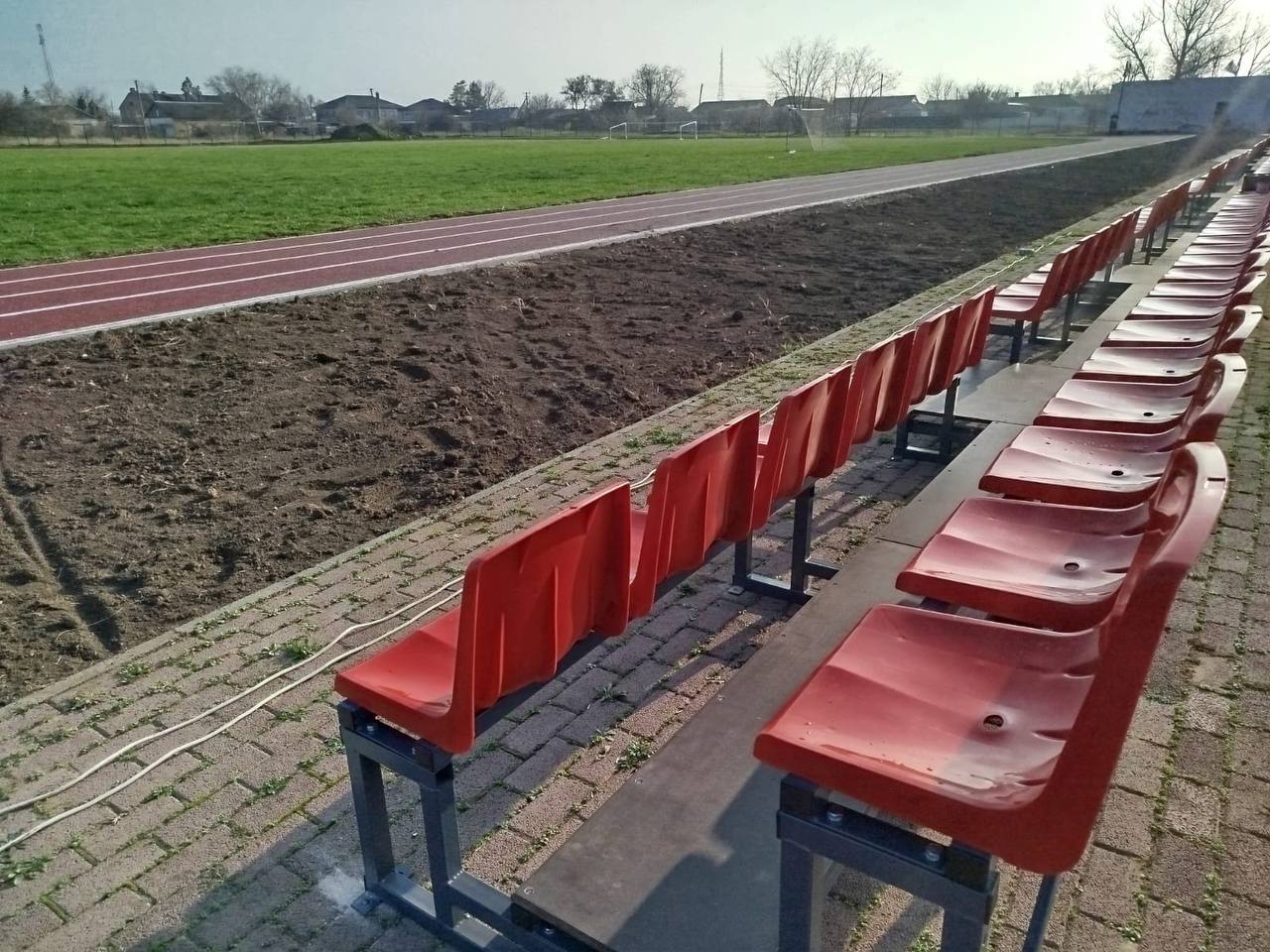 На стадионе "Арсенал" в Александровке уже установлены новые, современные трибуны и футбольные ворота!