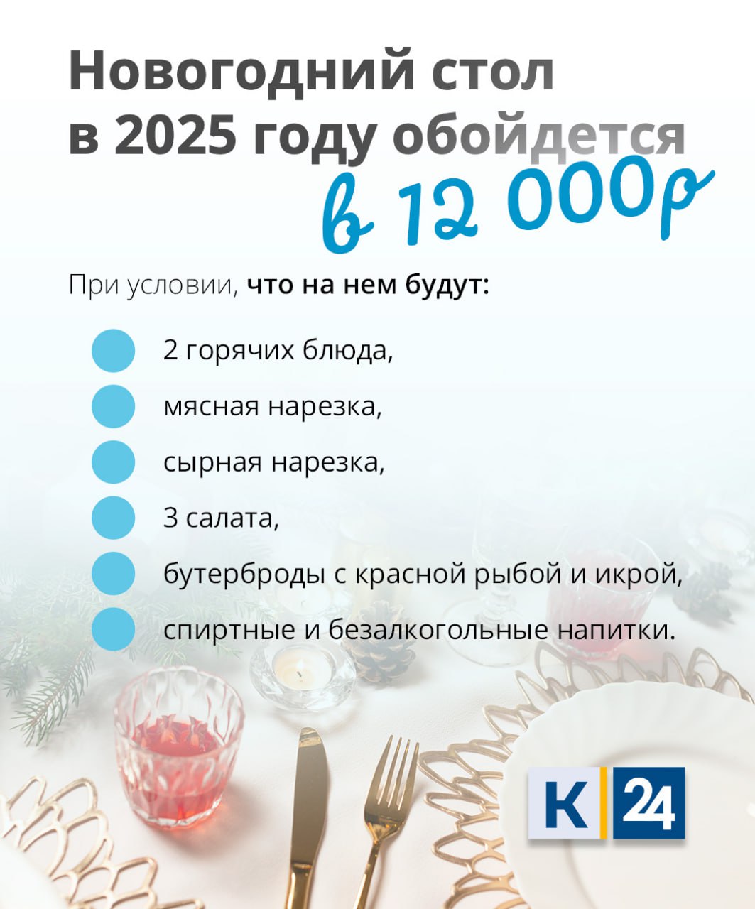 Новогодний стол в 2025 году обойдется россиянам в 12 тыс. рублей.