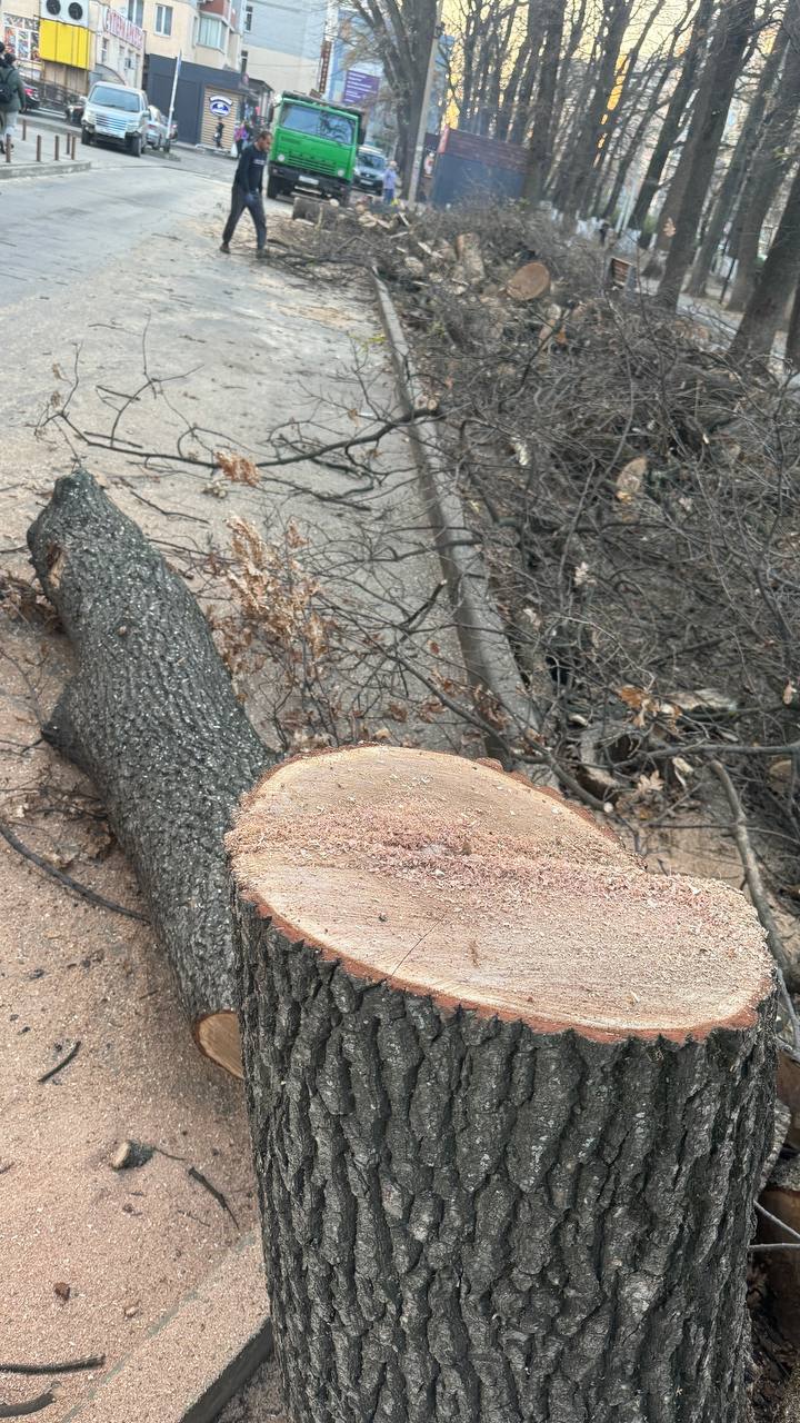 В Краснодаре 50 дубов вырубили на аллее на улице Героя Яцкова