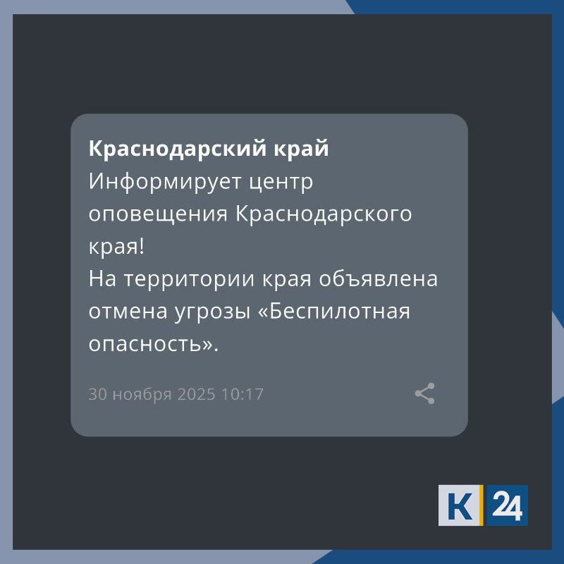 «Беспилотную опасность» отменили в Краснодарском крае.