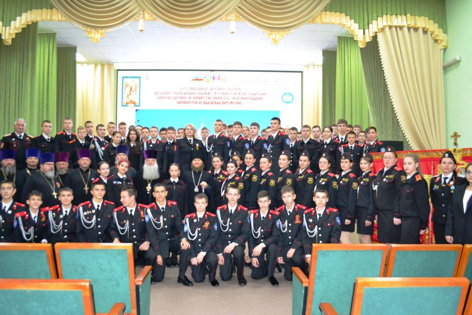 28 ноября в Ейском казачьем кадетском корпусе имени атамана З.А. Чепеги прошло заседание секции «Церковь и казачество: «V казачьи кадетские духовно-образовательные чтения Ейской епархии» в рамках XIII Михайло-Архангельских духовно-образовательных чтений Ейской Епархии «Просвещение и нравственность: формирование личности и вызовы времени». В работе секции приняли участие епископ Ейский и Тимашевский Серафим, войсковой священник Кубанского казачьего войска протоиерей Иоанн Гармаш, духовники и священники Ейской епархии, ВрИО атамана Ейского казачьего отдела Лаштабек Ю.В., атаманы и казачьи наставники Ейского казачьего отдела и Брюховецкого РКО, обучающиеся казачьих образовательных организаций, в том числе казачата пяти казачьих школ Ейского района.