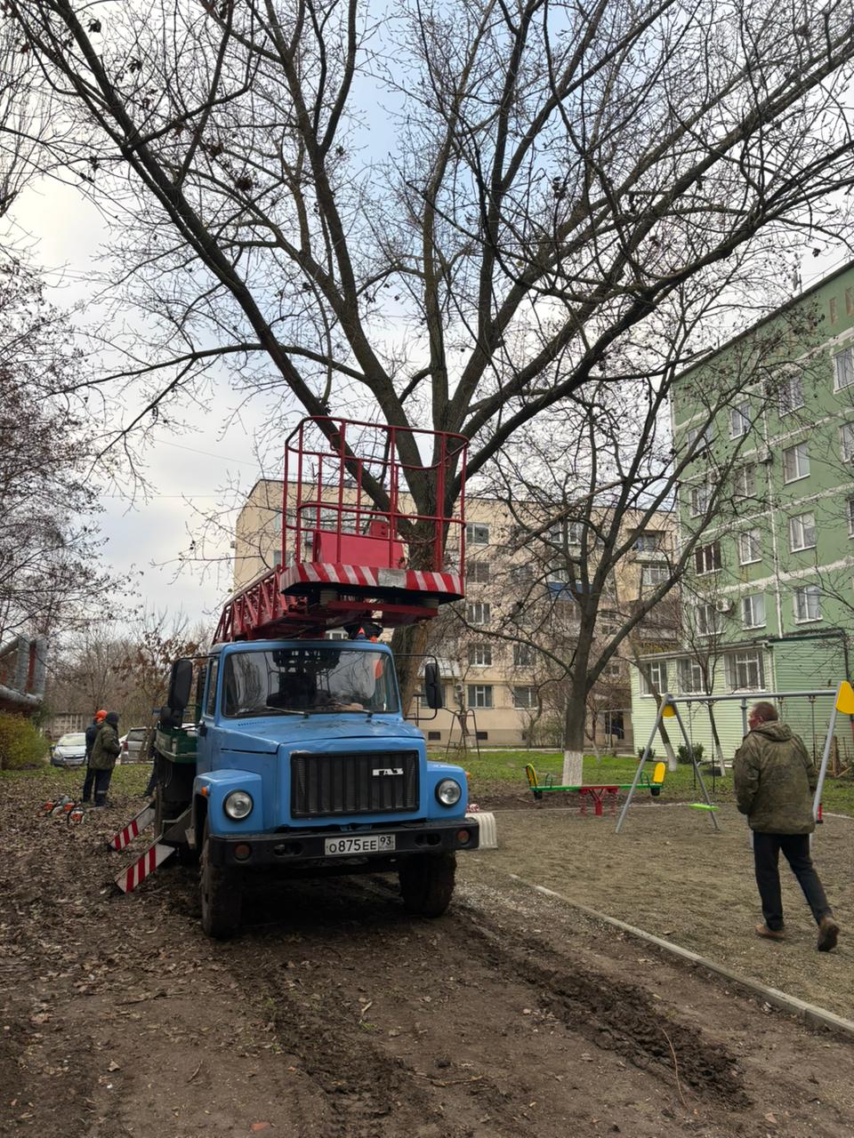 Ул. Октябрьская, 288 - обрезка сухих веток над детской площадкой