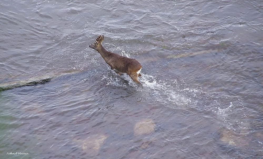 Михаил Ловиков поймал на побережье Туапсе необычный момент, как по волнам бежит косуля.