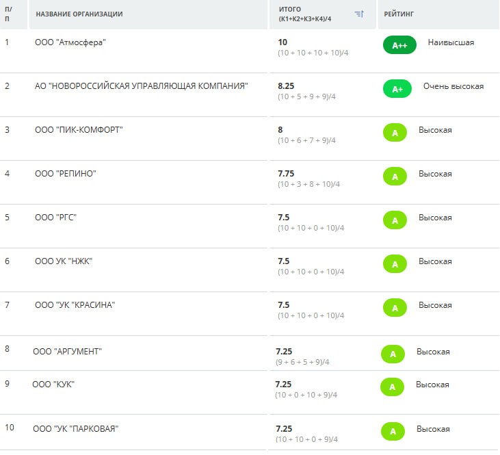 На платформе «Мой-Новороссийск.рф» составлен ежемесячный рейтинг управляющих компаний города за ноябрь 2025 года