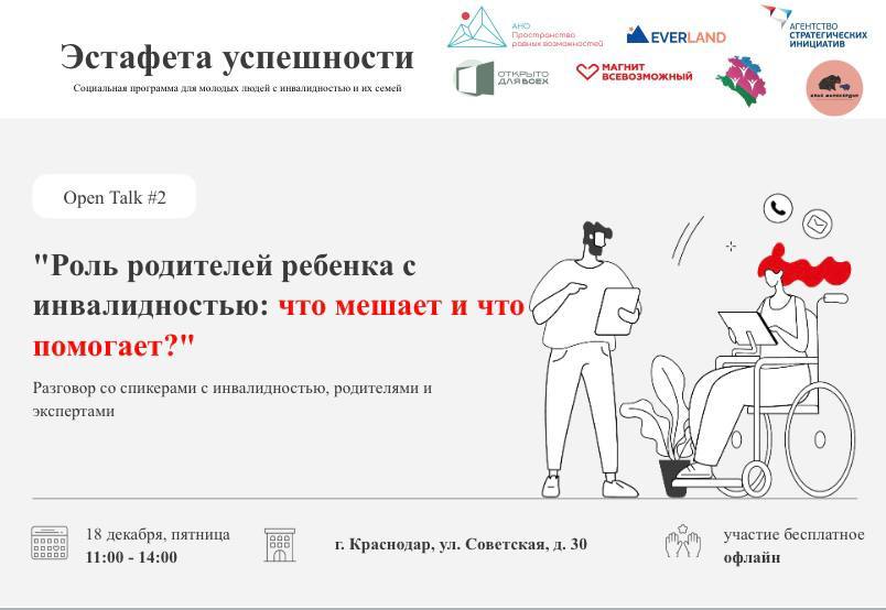 Стартует федеральная соцпрограмма «Эстафета успешности», направленная на поддержку молодых людей с инвалидностью и их семей. Организаторы - АНО «ЦРБП «Край милосердия» при поддержке «Магнита», Агентства стратегических инициатив (проект «Открыто для всех») и Everland.
