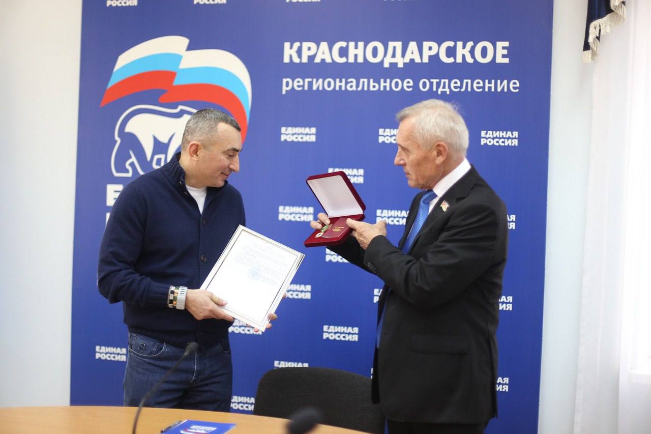 Награда прибыла в Краснодарское региональное отделения партии «Единая Россия», где и была вручена депутату краевого парламента Борису Юнанову.