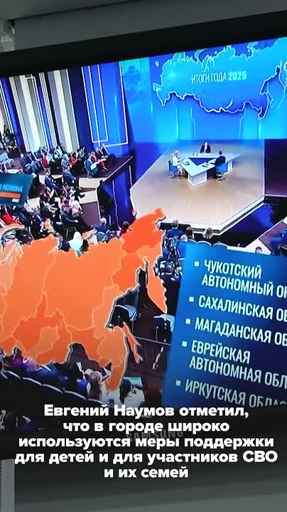 Евгений Наумов после пресс-конференции президента отметил, что в городе широко используются меры поддержки для детей и для участников СВО и их семей.