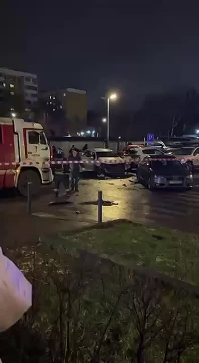По словам очевидцев, машина взорвалась в движении. Были повреждены рядом стоящие авто.