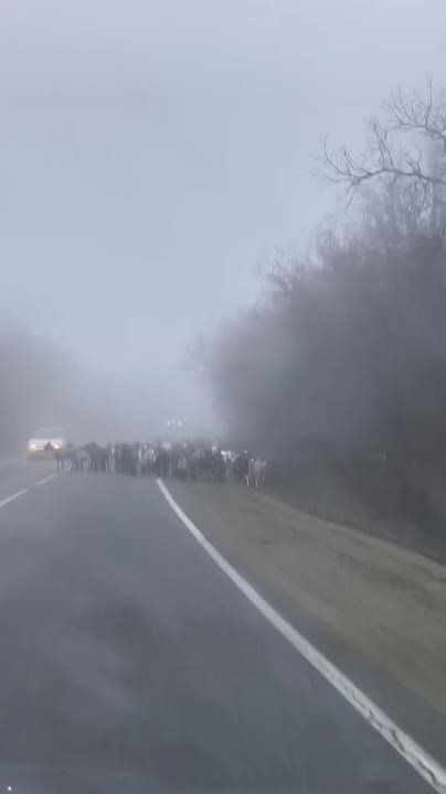 Рогатых пешеходов встретили по пути в село Гай-Кодзор — они большой группой прогуливались вдоль дороги.