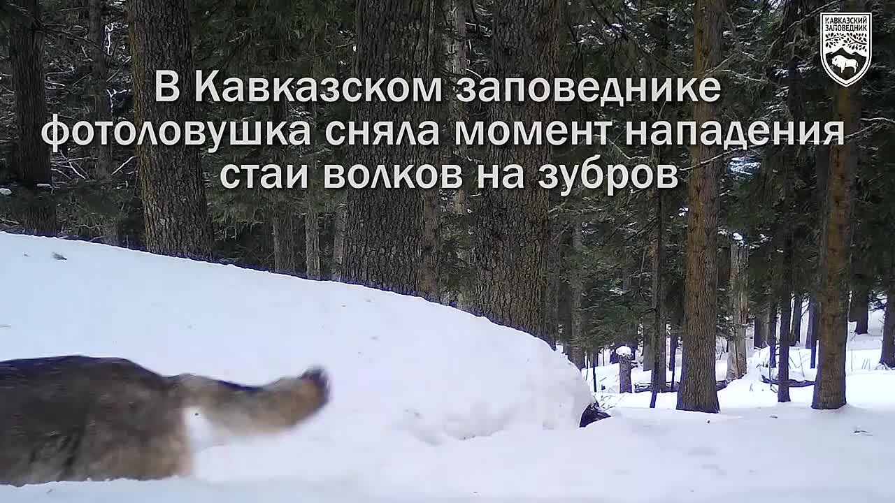 В Кавказском заповеднике фотоловушка запечатлела момент, как стая волков напала на стадо зубров. Целью хищников стал зубренок.