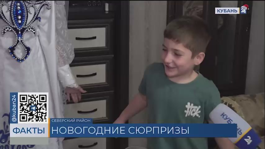 Дед Мороз и Снегурочка пришли поздравить семью Гаджиевых. У старшего ребенка — нарушение центральной нервной системы, а средний страдает бронхиальной астмой. О четырех детях сейчас заботится одна мама, глава семьи находится на СВО.